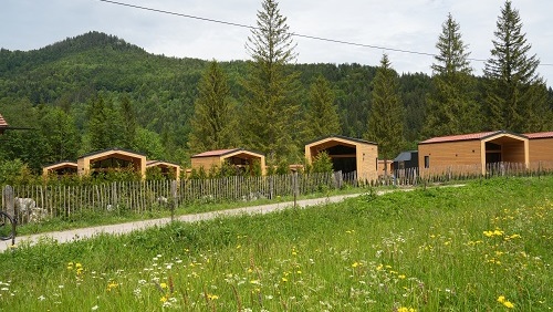 Drei Autominuten vom Hotel Alpenhof Bayrischzell entfernt können Sie das atemberaubende Alpenpanorama auf einer der Terrassen der zahlreichen Alpen-Tinychalets der Glockenalm genießen.