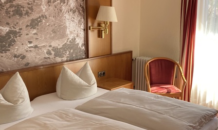 Die Superiorzimmer sind ca. 18 qm groß und verfügen über ein französisches Doppelbett, einen Schreibtisch, Balkon und ein Sofa, das zu einem weiteren Bett für 1 Person umfunktioniert werden kann. Des Weiteren sind die Zimmer ausgestattet mit TV, Dusche/WC und WLAN.